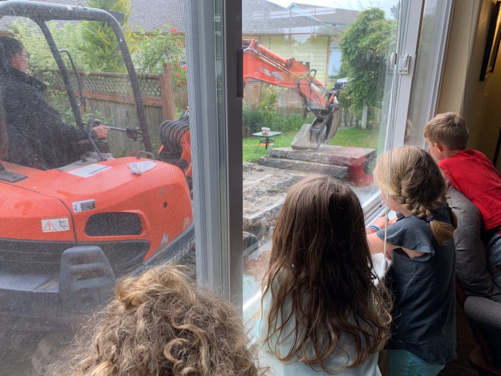 The children, Ben, Becky, Christine, and Leah had the wonderful opportunity to watch out the window as the workman broke ground to our new house.