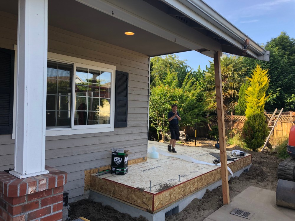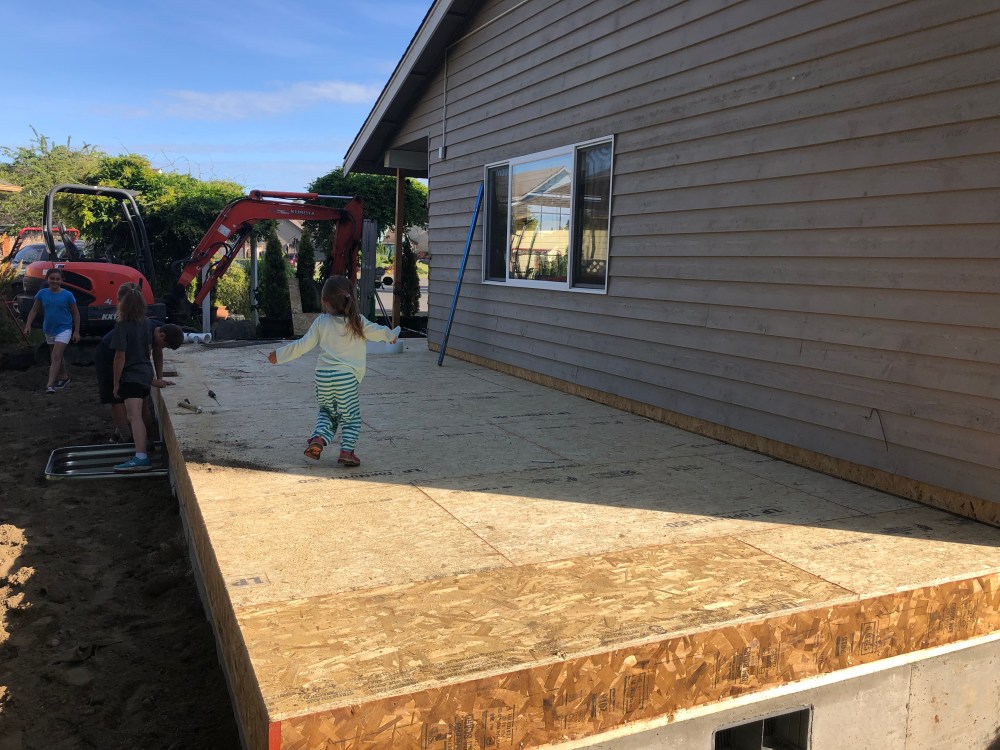 We have completed a phase of our remodel with our foundation and subfloor. It’s exciting to see the actual size of the room and the space for the downstairs area. The upstairs is still a little hard to imagine. Our contractor is faithfully doing what he needs to do and has been doing a great job. He back filled all around our foundation and as you can see created the proper crawl space for the added area.