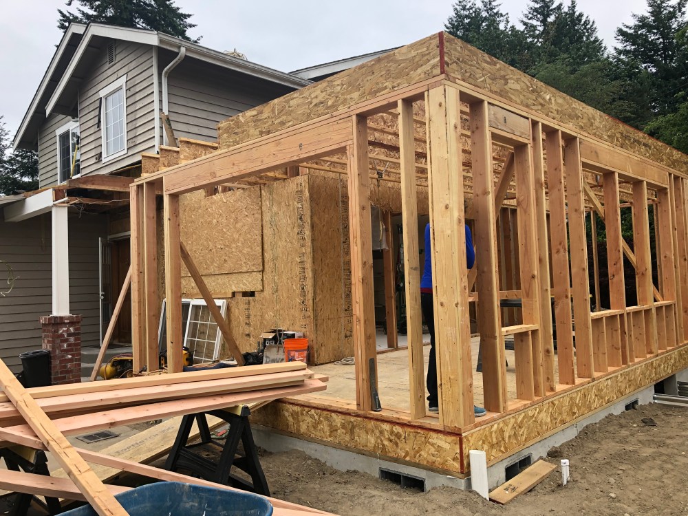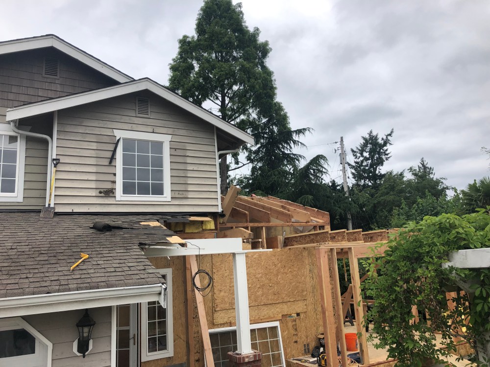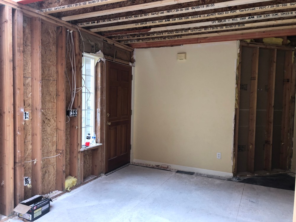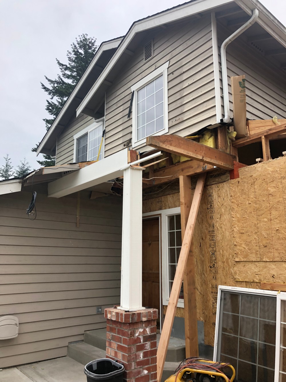 The old improperly installed supporting beam is now gone and substitute beams are in holding the new bracing and floor joists. The boys floor over our entry way is now starting to take place.