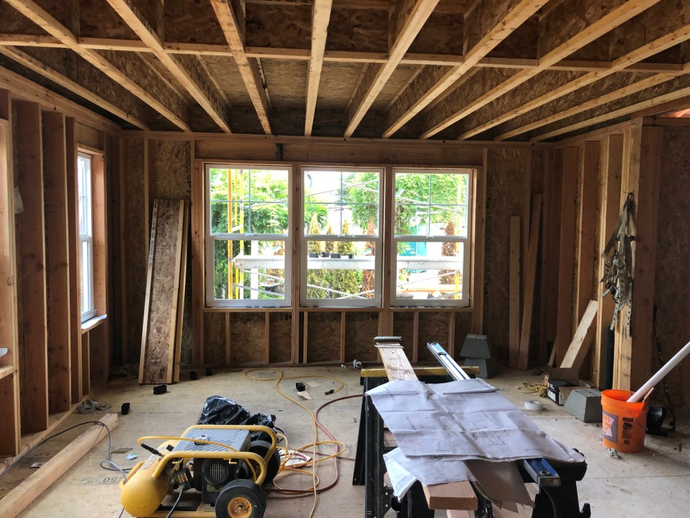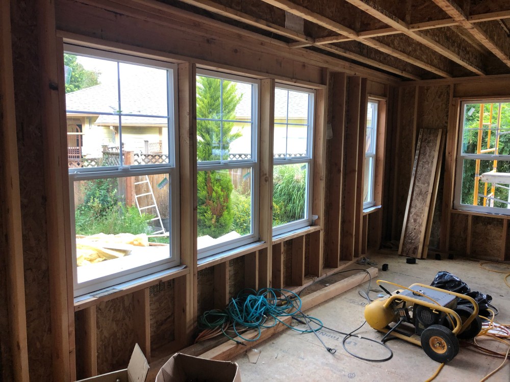 Life has been very busy and I am just now showing the installed windows. Jane was right to want lots of windows. It is absolutely beautiful in the morning. The sun fill the whole down stairs. We are all very glad too that the house is now sealed. We can actually close the house and not feel like we are living in the open air.