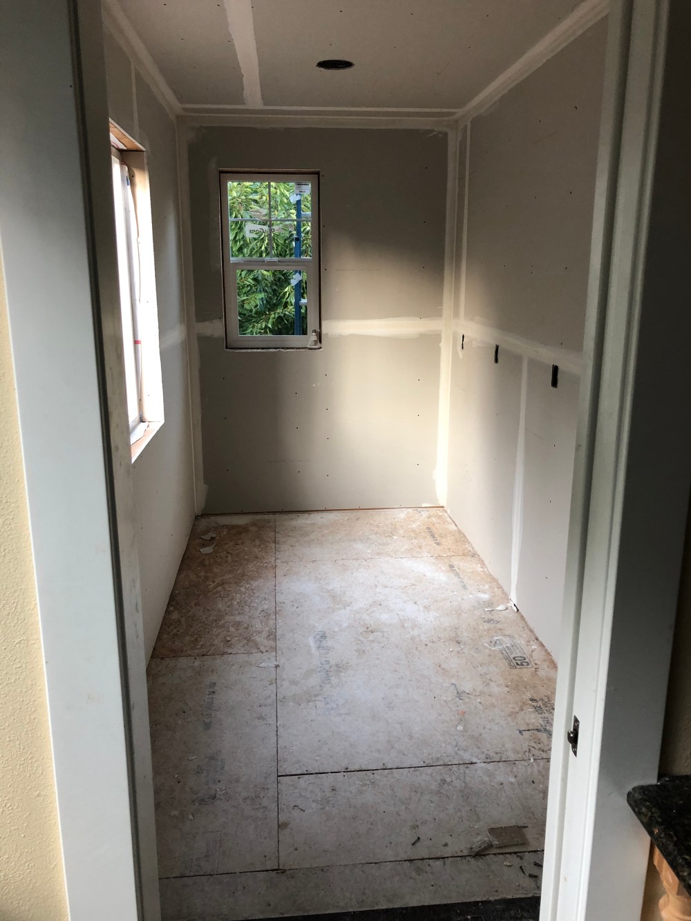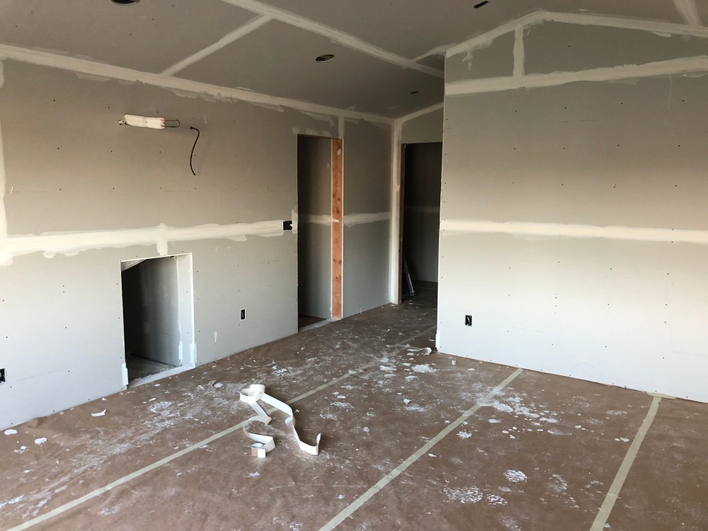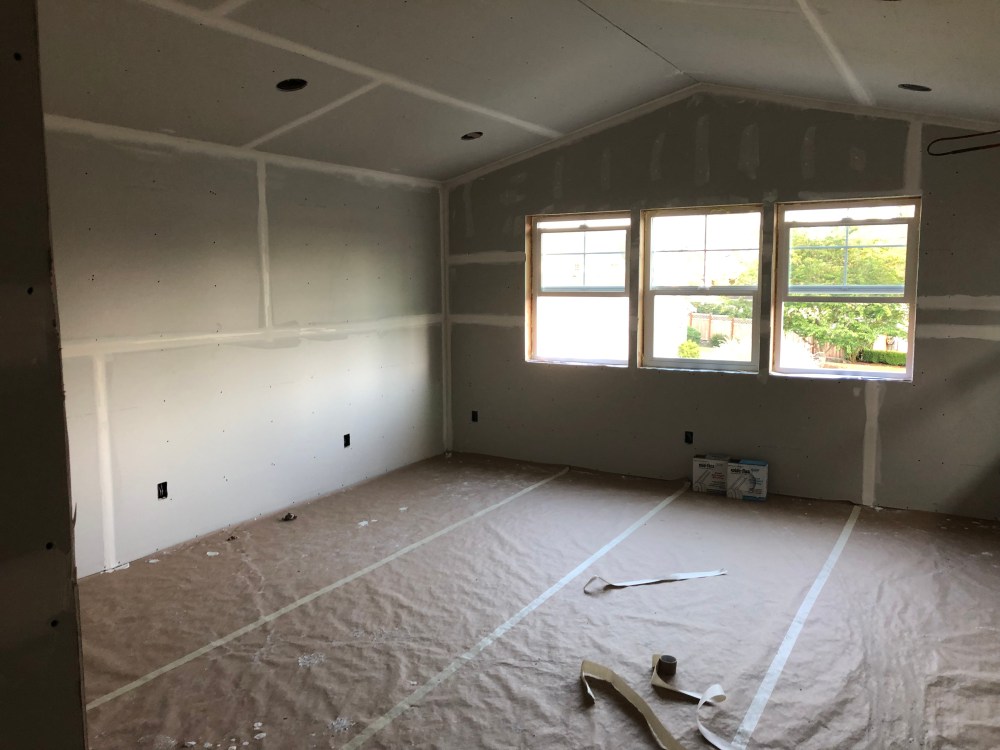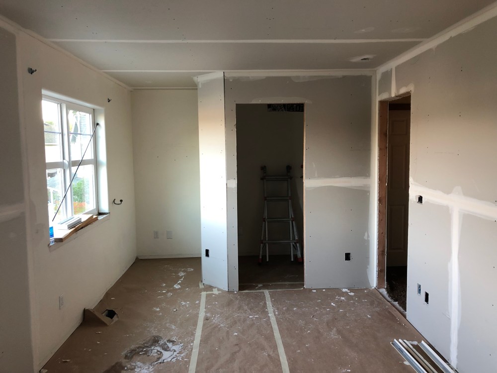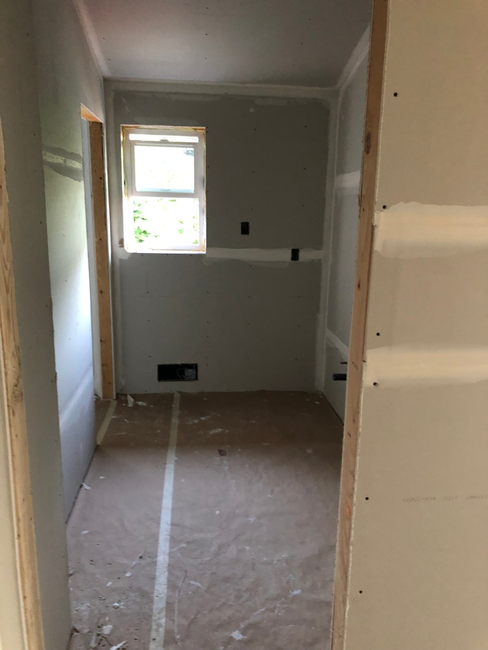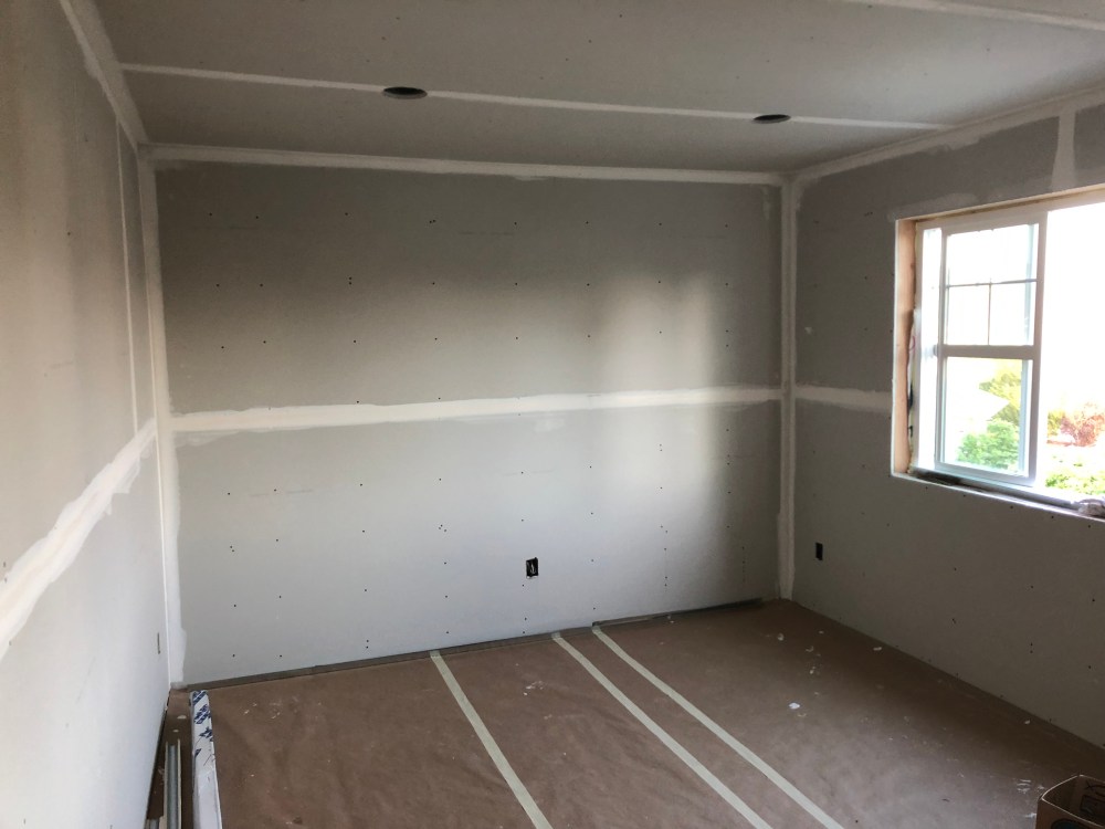 Our rooms are now insulated, sheet rocked, and today they have been taped and mud applied. The rooms are now more of what they will really look like.