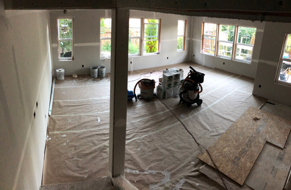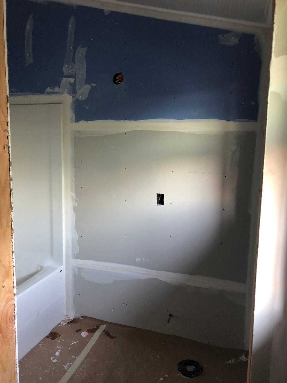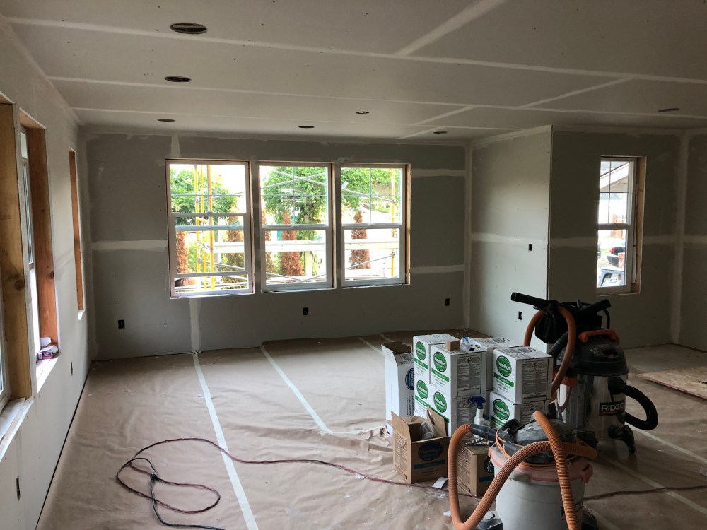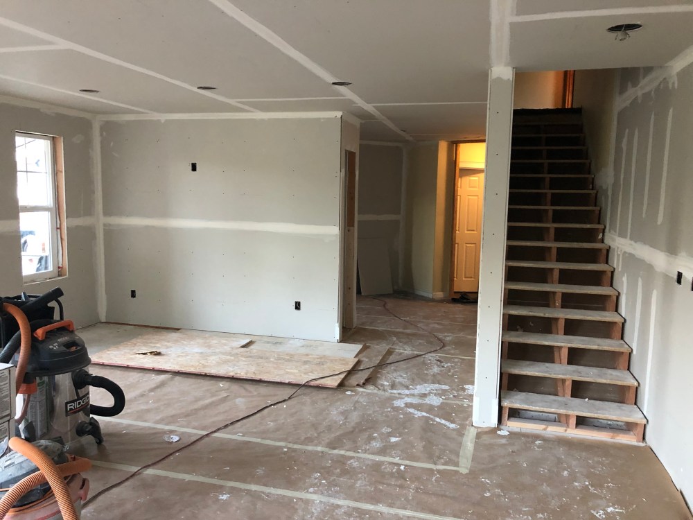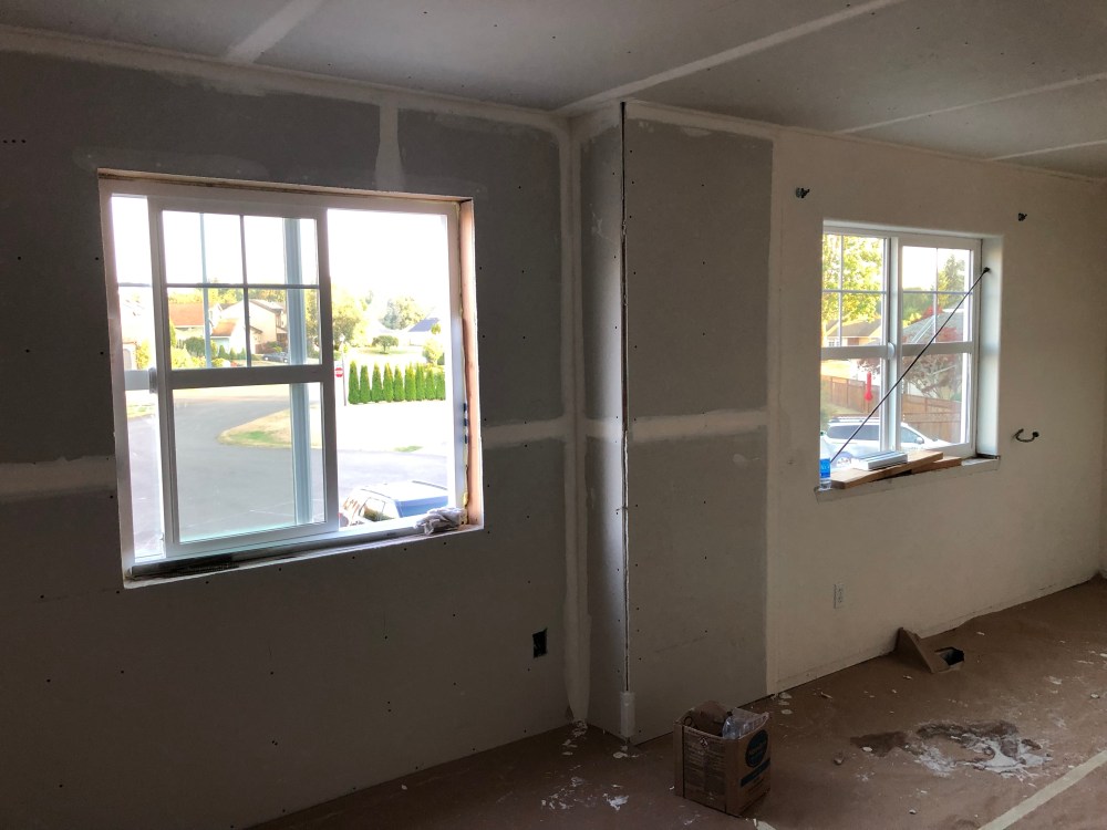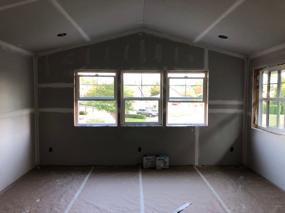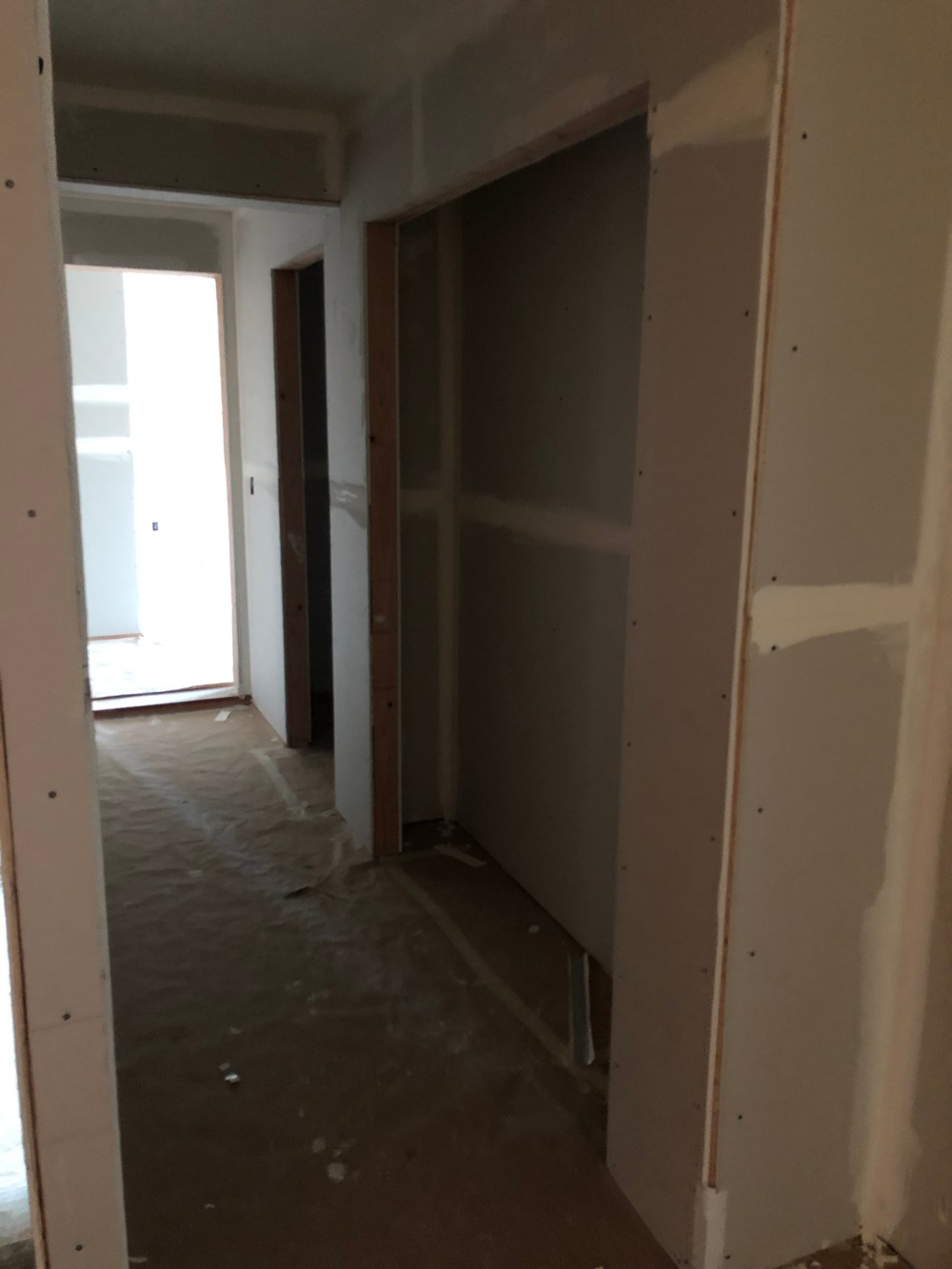 Our rooms are now insulated, sheet rocked, and today they have been taped and mud applied. The rooms are now more of what they will really look like.